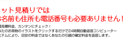 引越料金の限定プランです。お見積やお問い合わせはお気軽にどうぞ!満足のいくサービスとお得な引越料金をぜひ体験して下さい。